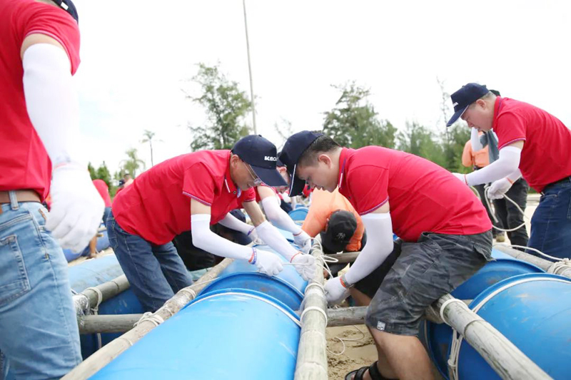 科達陶機經營班子揚帆出海,打破溝通壁壘,實現打造高效協作團隊的目標。成員齊心協力,從無到有,利用材料合力搭建一艘完整的大帆船,親手繪制船帆。邊程董事長為大帆船舉行升帆儀式,并與楊學先總經理一起帶領團隊破浪遠航。面向一望無際的大海,每一個獨立的個體都是渺小的,只有依靠團隊的協作,才能共同抵達終點。全體船員堅守同舟共濟、誓奪勝利的信念,以團隊的力量讓成功志在必得。