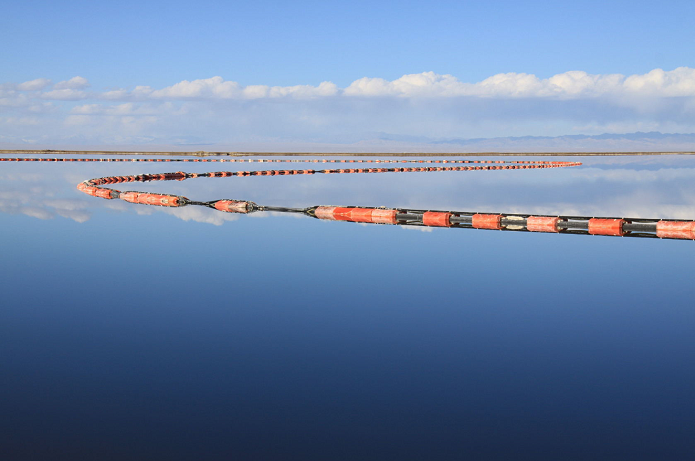 藍科鋰業公司雄偉壯觀的鹽湖取鹵場景。