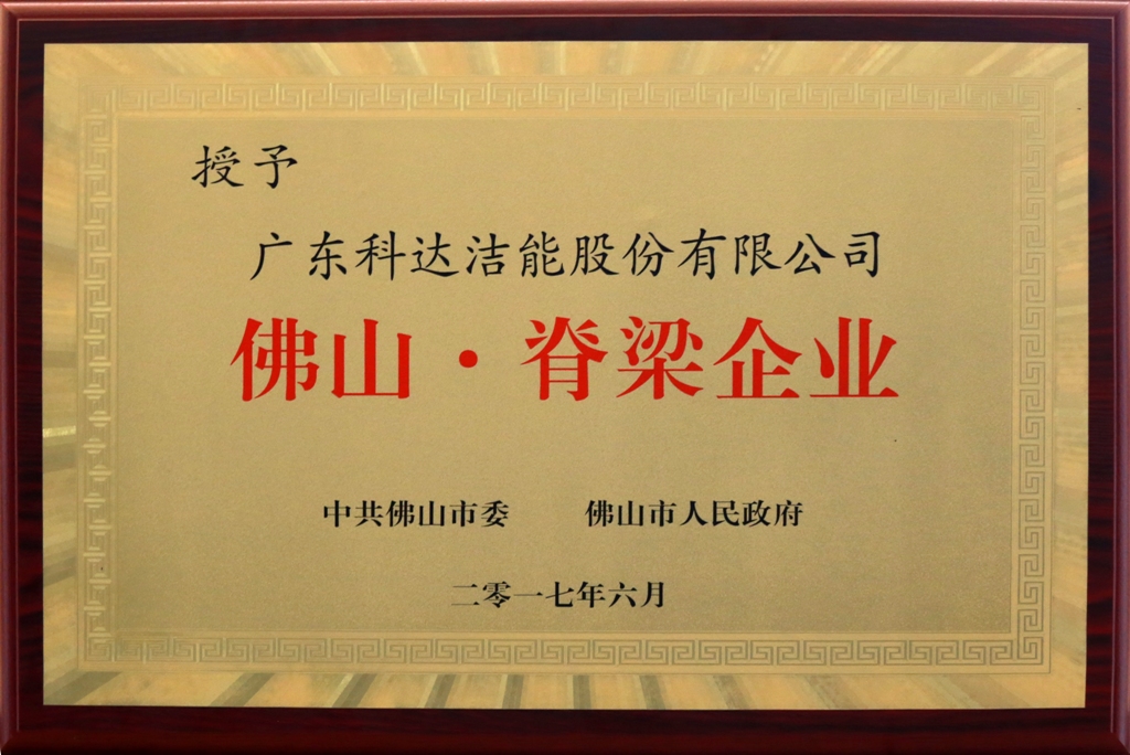 在“佛山·脊梁企業”“佛山·大城企業家”命名大會上,美的、碧桂園、科達潔能等20家企業被授予“佛山·脊梁企業”稱號,市委書記、市人大常委會主任魯毅為“佛山?脊梁企業”頒牌,科達潔能副總裁周鵬代表企業上臺領獎。