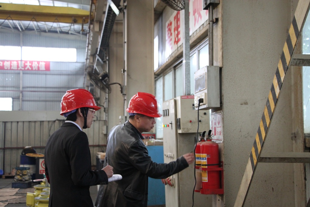 周總率安檢人員進車間、查倉庫、入廚房,先后仔細檢查了石材車間、深加工車間、結構件車間、光伏電站控制室、物管部油漆倉庫、整線工程油漆倉庫、生產垃圾池及公司飯堂后廚等重點區域。檢查人員對現場檢查中發現的消防、電氣、設備防護等隱患一一登記,周總還在現場對安全隱患提出了具體整改提出了要求和指導意見。