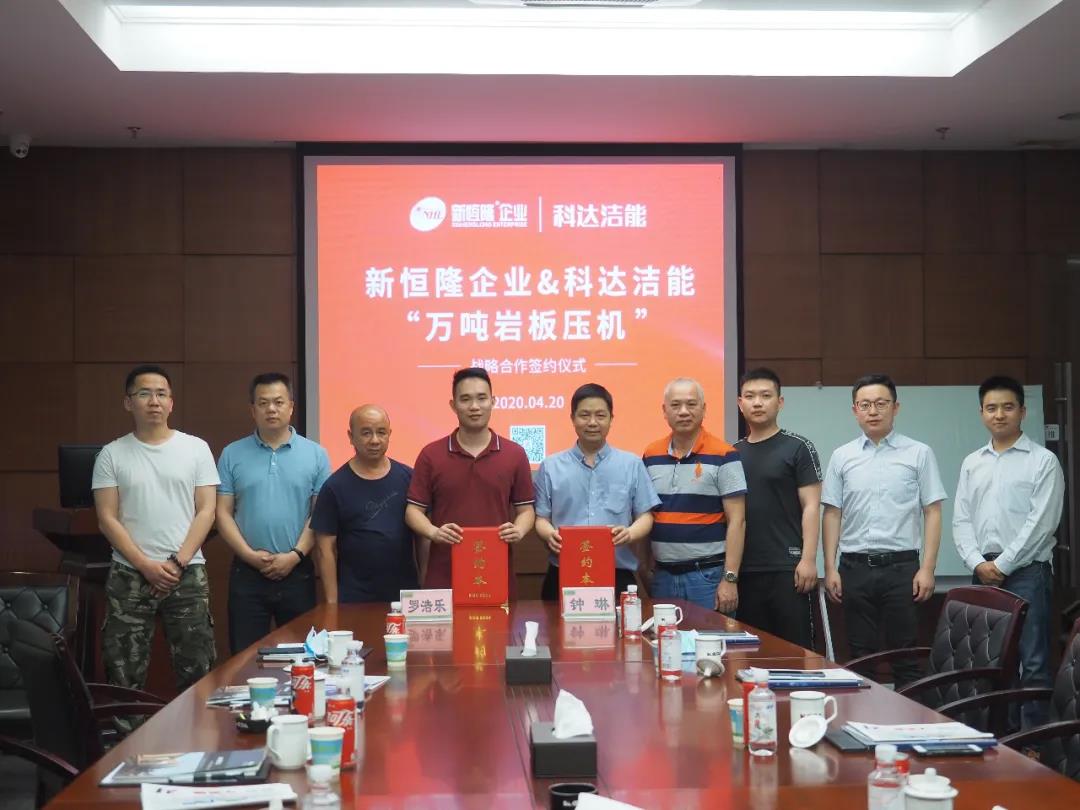 佛山市新恒隆企業三水研發及生產基地為"佛山市新華陶瓷業有限公司",是新恒隆企業旗下子公司,目前擁有4條生產線,日產能達到73000平方米。新恒隆企業與科達在拋磨設備領域有著長期穩定合作,以此次萬噸壓機簽約儀式為契機,雙方的合作將迎來新的階段,在更多產品領域強強聯合,實現共贏。