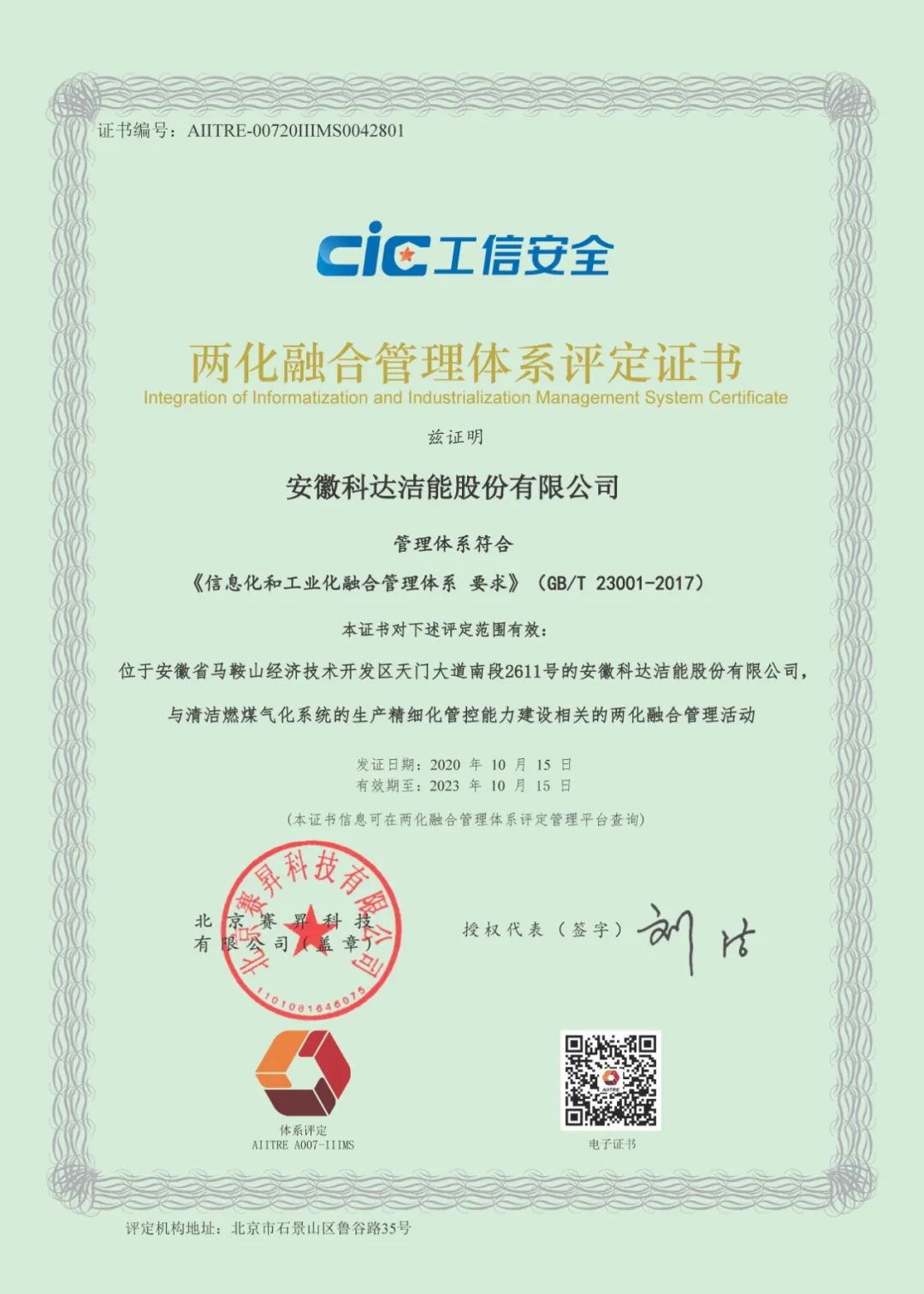 近日,安徽科達(dá)潔能股份有限公司通過(guò)現(xiàn)場(chǎng)評(píng)審、合規(guī)性審查、專(zhuān)家復(fù)核和網(wǎng)絡(luò)公示等環(huán)節(jié),順利獲得兩化融合管理體系評(píng)定證書(shū),見(jiàn)證了公司運(yùn)營(yíng)管理及信息化建設(shè)水平。