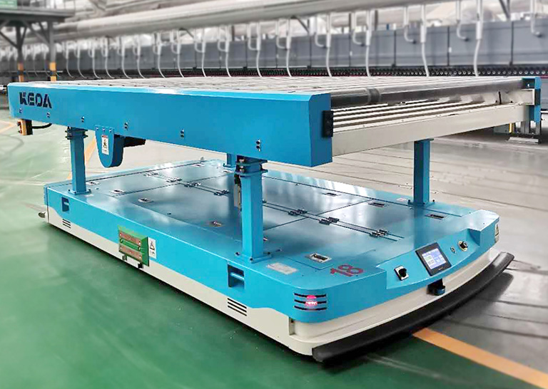 采用雙向輥臺AGV對發(fā)泡磚窯具進行回收輸送,全過程自動化,柔性化。