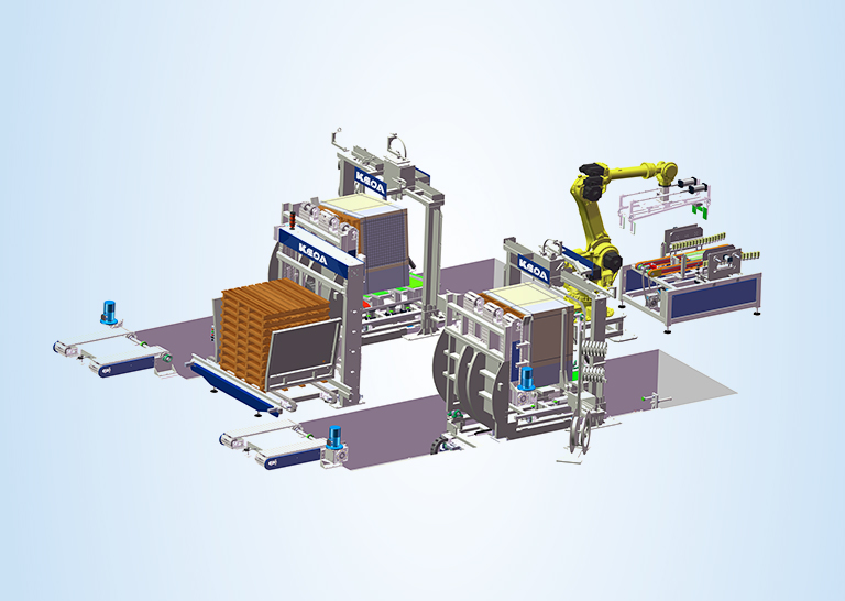 系統(tǒng)集成臥托式碼包機(jī)、自動(dòng)捆托機(jī)、自動(dòng)托盤庫及鏈?zhǔn)捷斔途€, 能實(shí)現(xiàn)高效完成多種規(guī)格的進(jìn)倉托、口字托等碼垛,自動(dòng)取送托盤 及物流輸送的智能碼垛 , 采用模塊式設(shè)計(jì)能對接 AGV 等智能輸送設(shè) 備,完成包裝、碼垛、倉儲(chǔ)物流及出貨裝車自動(dòng)化。