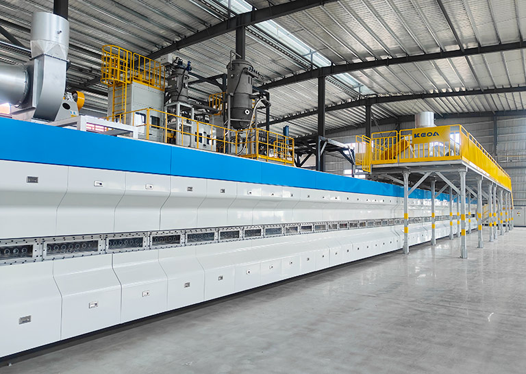 KDN系列輥道窯,耐材合理配置,爐表溫升30~40度;氣密性強,正常生產氧濃度20ppm以下;使用能耗低,能耗比上一代產品降低約30%; 產能大,能耗低,品質穩定,分體掛板美觀適用,精密輸送,出缽整齊。